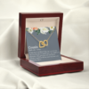 Two hearts embellished with Cubic Zirconia stones, interlocked together as a symbol of never-ending love.