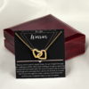 Two hearts embellished with Cubic Zirconia stones, interlocked together as a symbol of never-ending love.